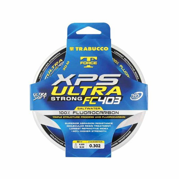 نخ فلوروکربن Trabucco مدل (50m XPS FC403) یک نخ بسیار ویژه ساخته شده از ماده منحصر به فرد فلوروکربن میباشد که جهت استفاده در چالش برانگیزترین سبکهای ماهیگیری (آب شور) بسیار مناسب میباشد. در این محصول ماهیگیر حق انتخاب طیف وسیعی از ضخامت نخ را دارا میباشد. از ویژگیهای این نخ فلوروکربن میتوان به مقاومت فوق العاده در برابر فرسایش و همچنین مقاومت در برابر آب شور اشاره کرد. این نخ بسیار نرم در زمان گره زدن بسیار خوب عمل میکند و میتوانید گره های بسیار قوی را بزنید. این نخ سبک جهانی دارای قدرت ترمیم مولکولی بوده و خود ترمیم میباشد.