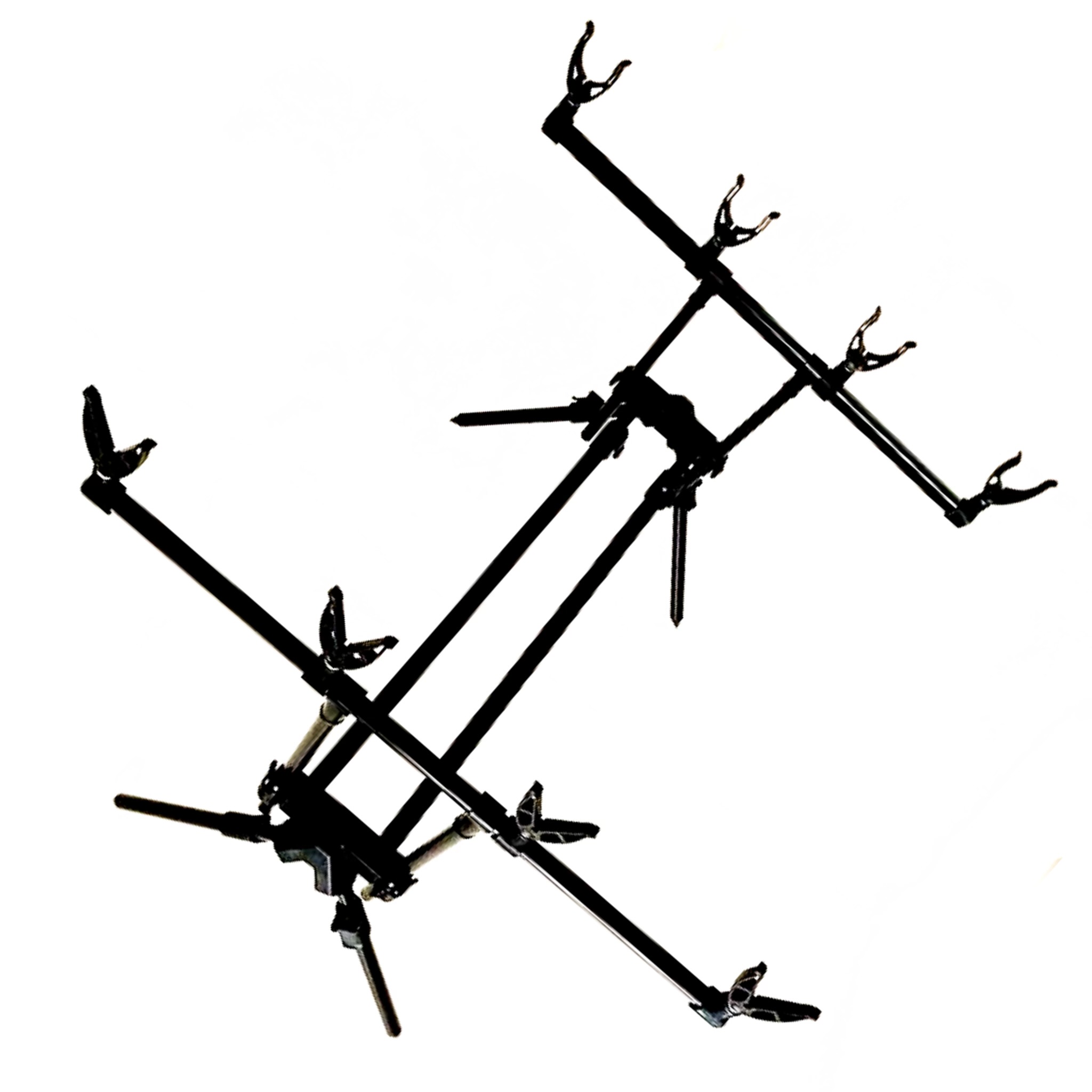 پایه چوب ماهیگیری با قابلیت تنظیم برای سیستم انتظاری ( کپور گیری ) با جنس آلومینیوم همراه با کیف مخصوص حمل این امکان را برای شما فراهم می آورد که همزمان 4 چوب را بر روی آن قرار دهید و منتظر صید بمانید . این پایه پد از جنس آلومینیوم و بسیار سبک و مقاوم می باشد . اندازه پایه های و محل قرار گیره پایه های چوب قابلیت تنظیم دارد .