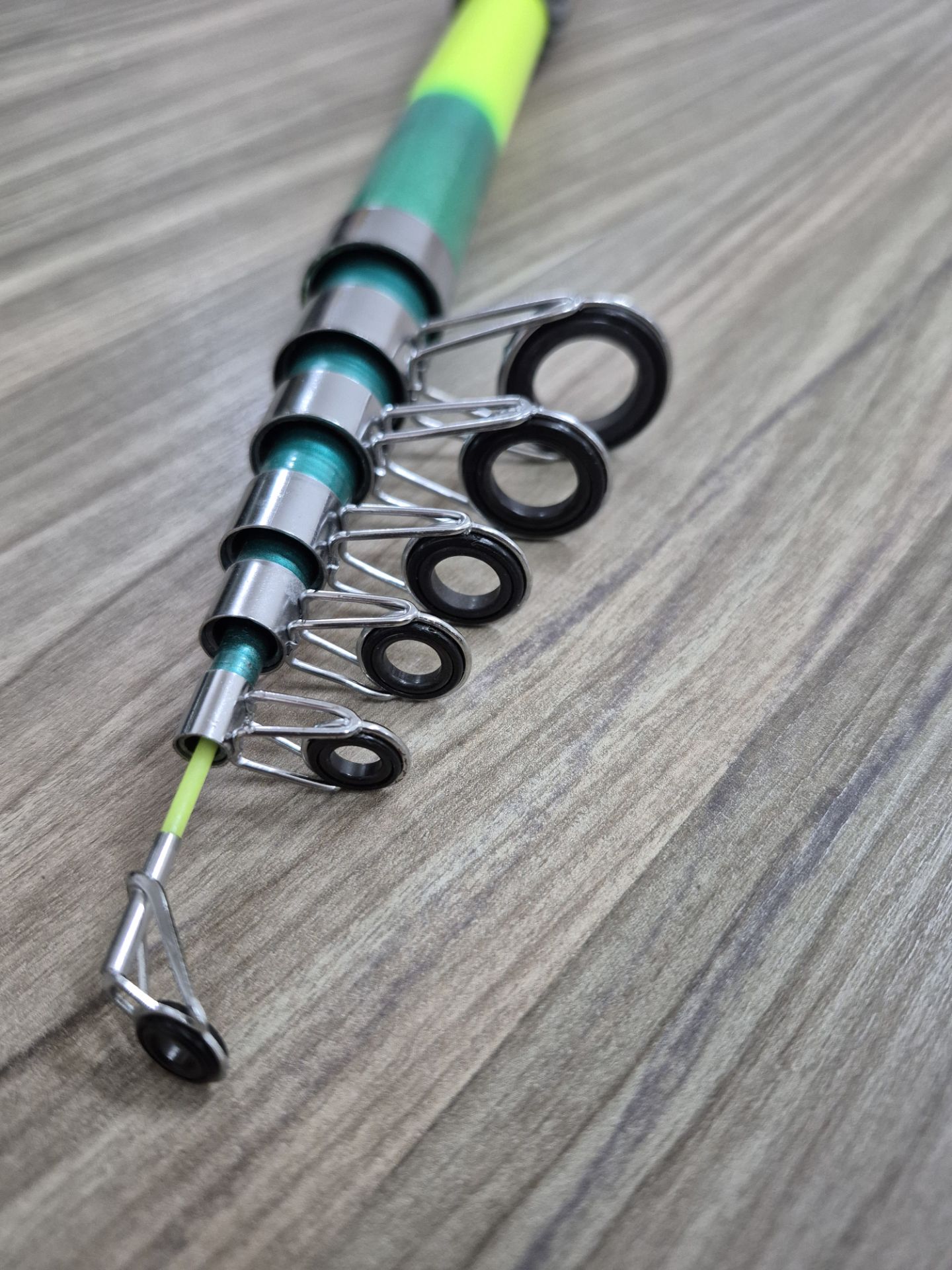 چوب ماهیگیری VALERIE 360 مجهز به حلقههای مقاوم و باکیفیت است که حرکت روان نخ را تضمین میکند و در برابر سایش و خوردگی دوام بالایی دارد. این ویژگی باعث افزایش طول عمر نخ و بهبود عملکرد در هنگام پرتاب و درگیری با ماهی میشود.