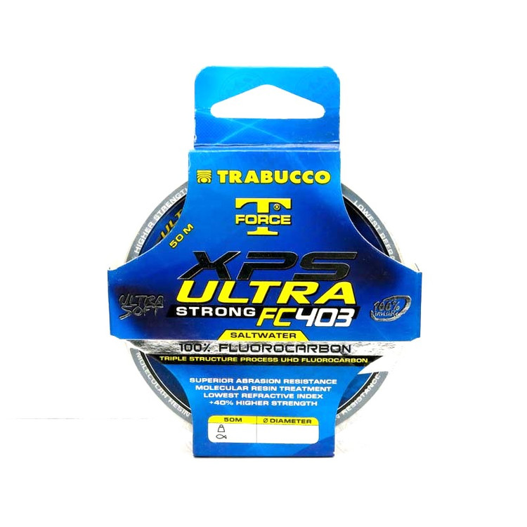 نخ فلوروکربن Trabucco مدل (50m XPS FC403) یک نخ بسیار ویژه ساخته شده از ماده منحصر به فرد فلوروکربن میباشد که جهت استفاده در چالش برانگیزترین سبکهای ماهیگیری (آب شور) بسیار مناسب میباشد. در این محصول ماهیگیر حق انتخاب طیف وسیعی از ضخامت نخ را دارا میباشد. از ویژگیهای این نخ فلوروکربن میتوان به مقاومت فوق العاده در برابر فرسایش و همچنین مقاومت در برابر آب شور اشاره کرد. این نخ بسیار نرم در زمان گره زدن بسیار خوب عمل میکند و میتوانید گره های بسیار قوی را بزنید. این نخ سبک جهانی دارای قدرت ترمیم مولکولی بوده و خود ترمیم میباشد.