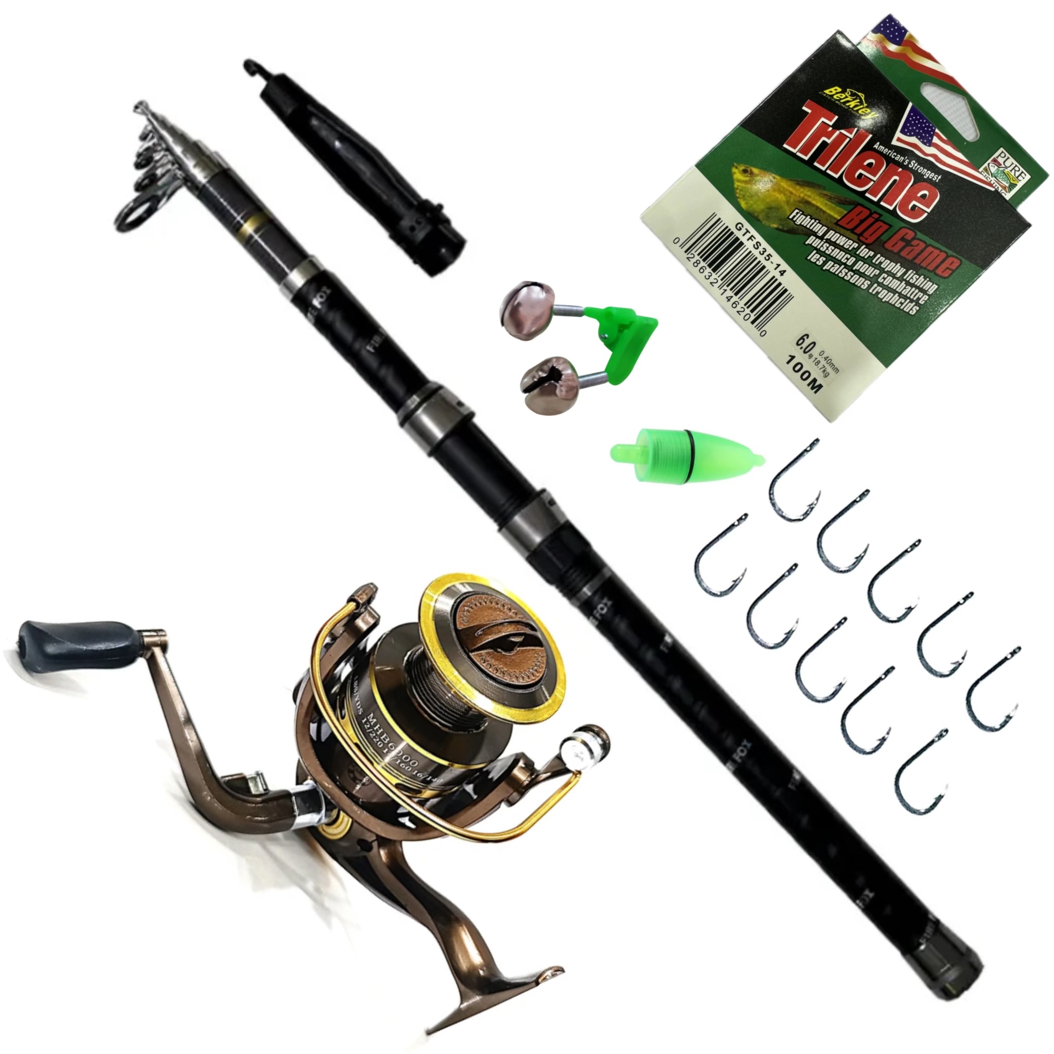 ست چوب فایر فاکس اصلی FIRE FOX 360 و چرخ AOQIUSITE MHB 6000 ماهیگیری بهمراه لوازم جانبی